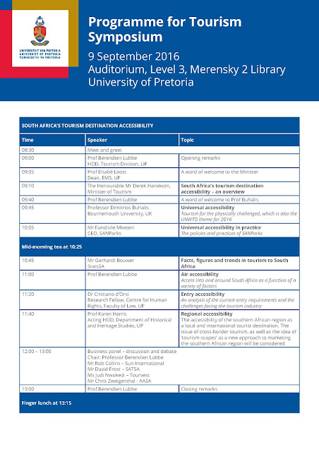 Professor Dimitrios Buhalis, Head of Department of Tourism and Hospitality, Bournemouth University is the invited keynote speaker at the Tourism Symposium at the University of Pretoria, South Africa on Friday 9th September as part of the World Tourism Day celebrations. He will explain Universal Accessibility and the impact of technology and social media to make tourism accessible to all.